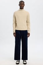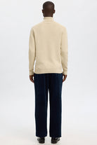 - Sweter ma ściągacze przy kołnierzu, rękawach i u dołu