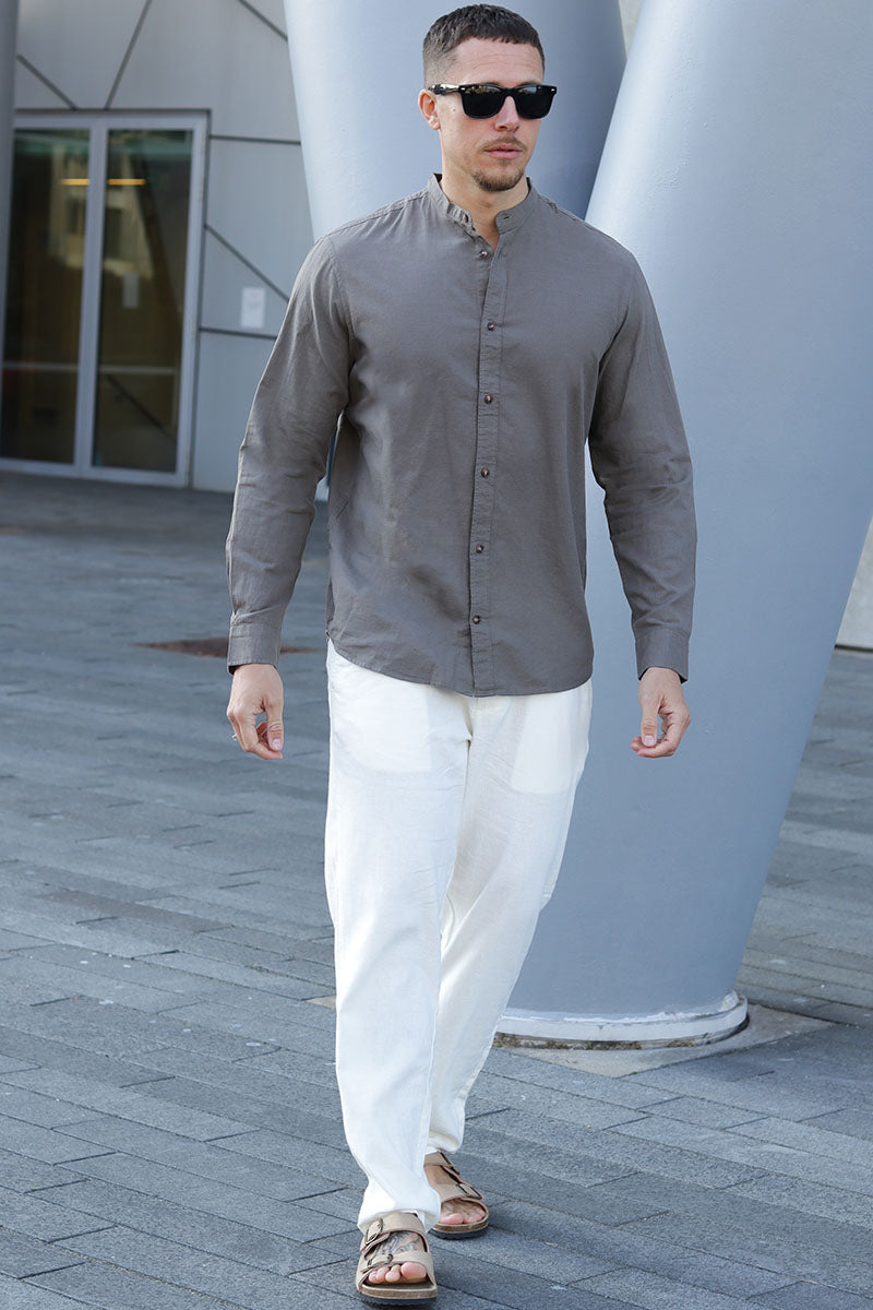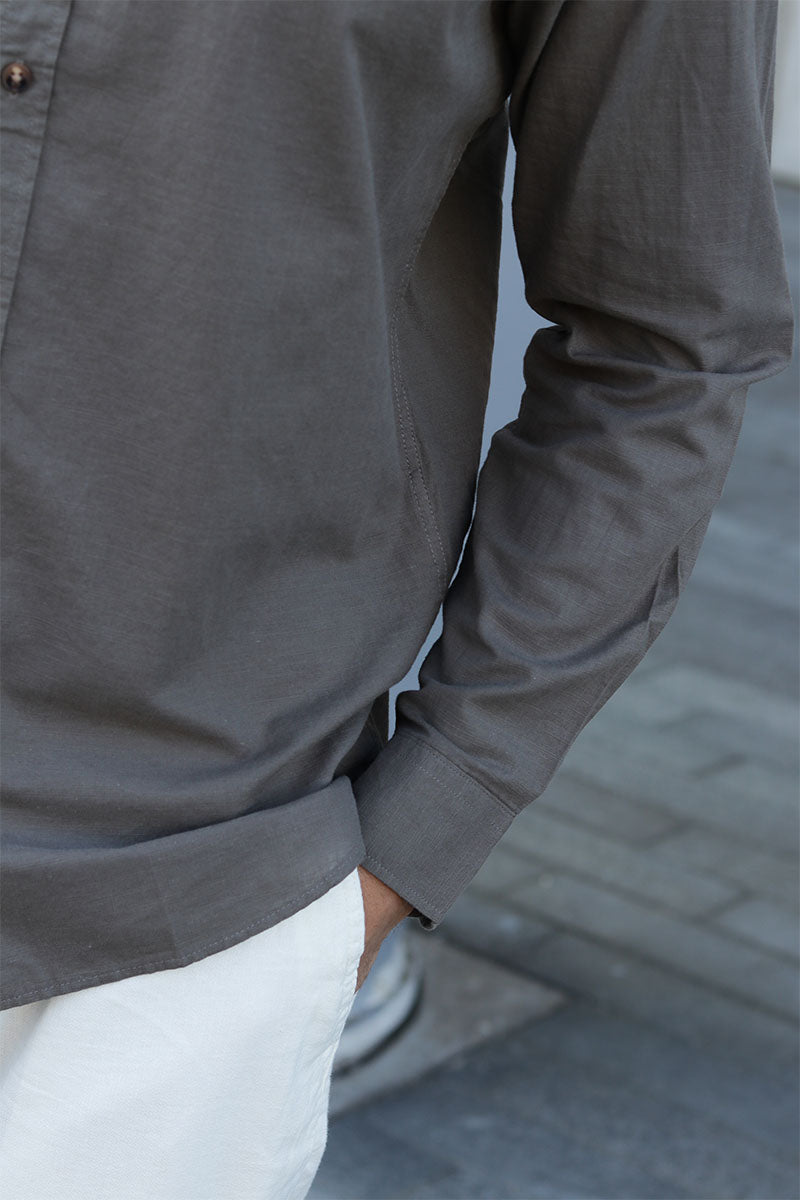 - Szara koszula z długim rękawem o kroju comfort fit.