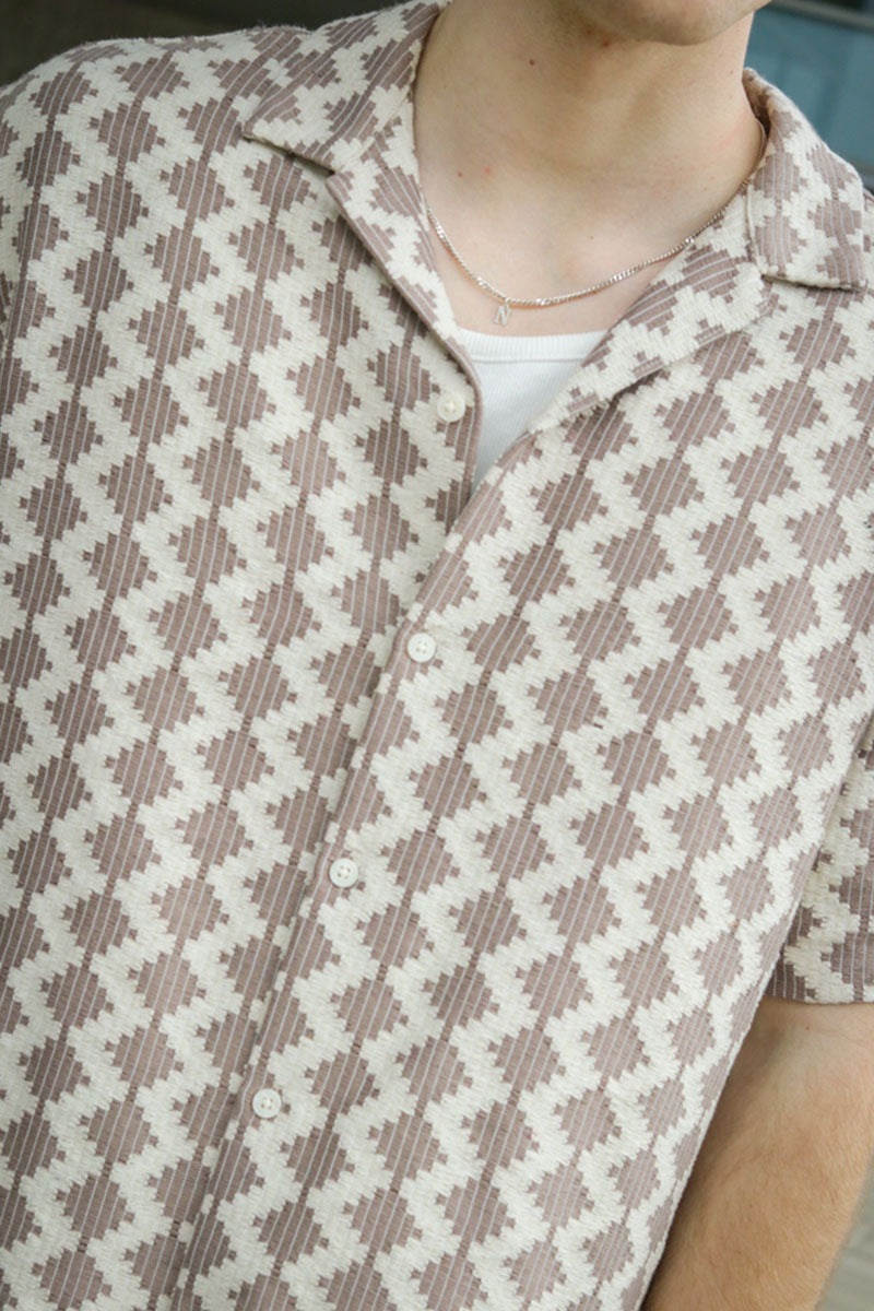 Summer Luke Regular Fit Texture Resort Shirt SS Mocha Meringue