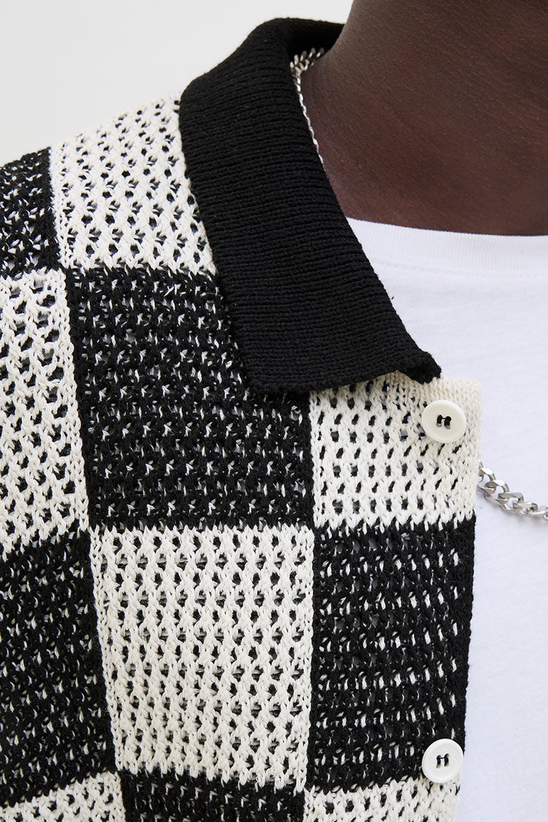 - Kratkowany sweter z krótkim rękawem w luźnym kroju.