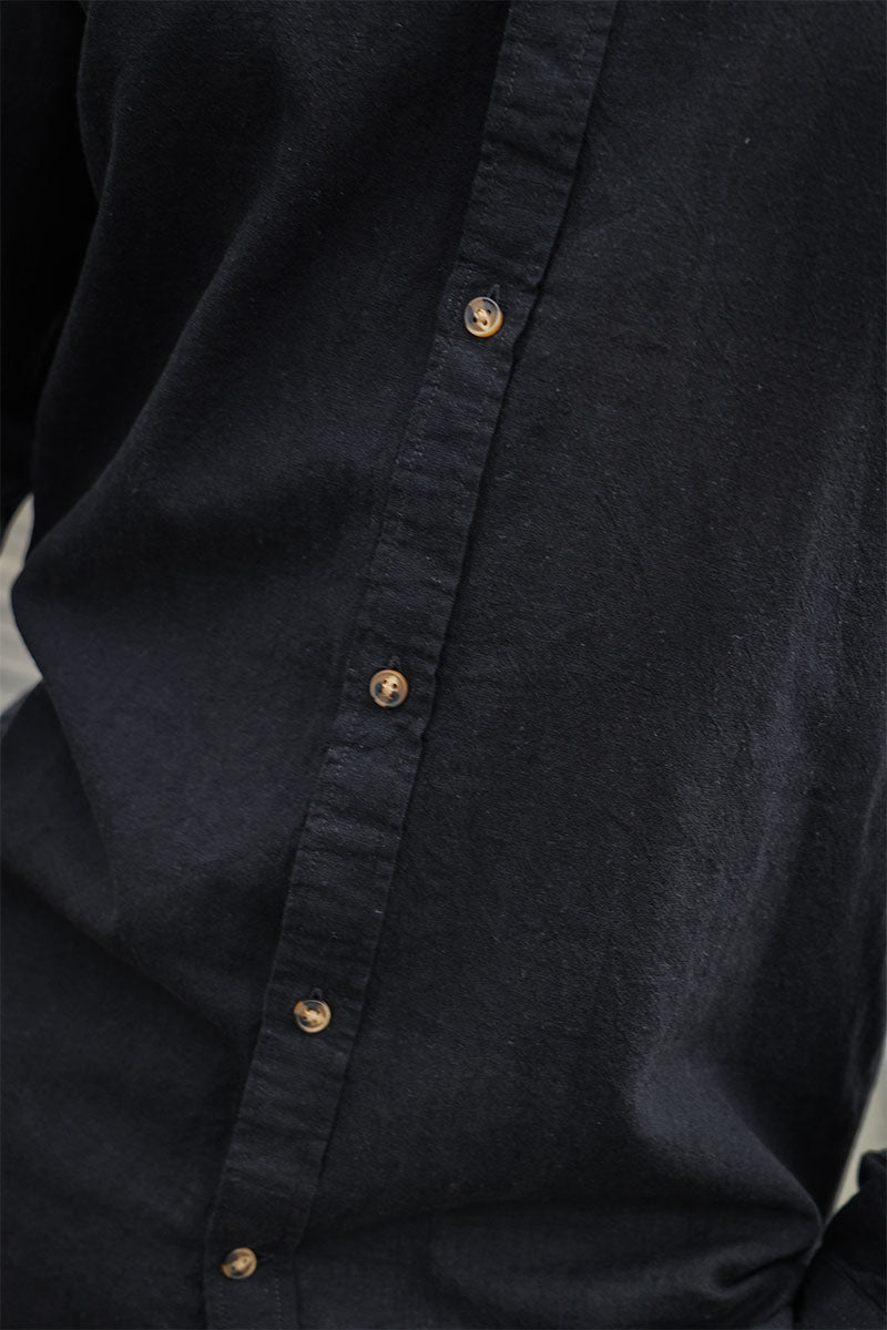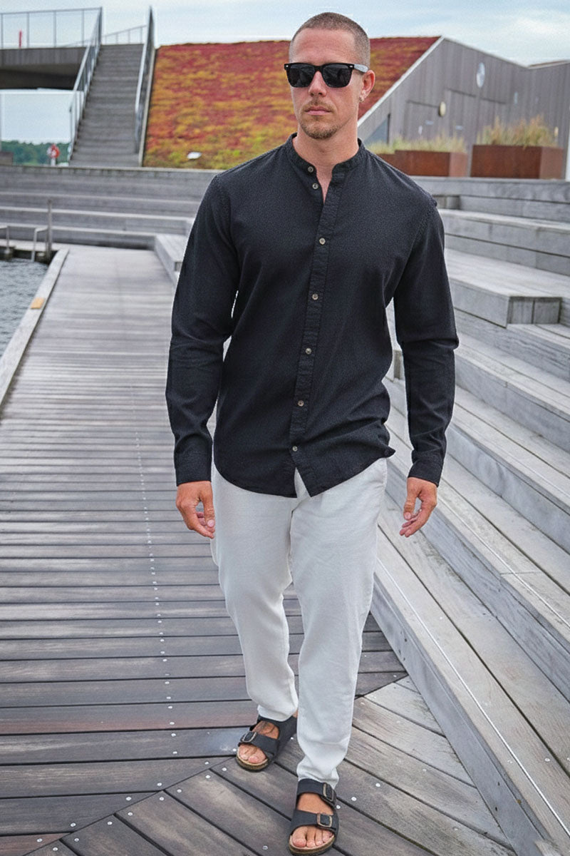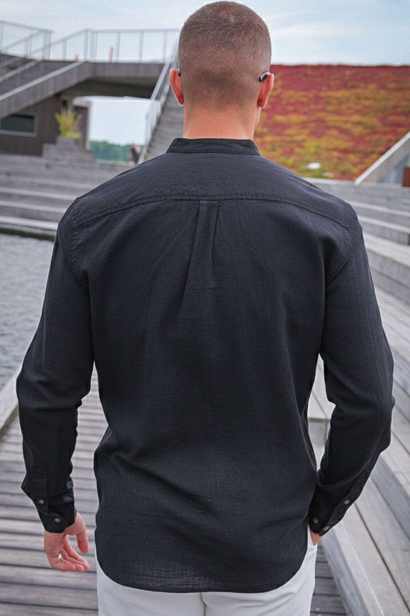 Summer Shirt Linen Blend Band LS Black