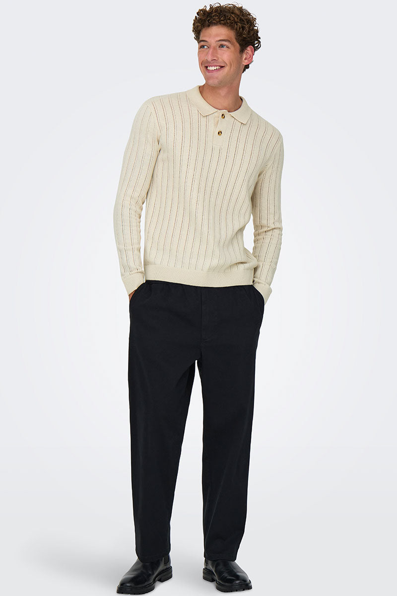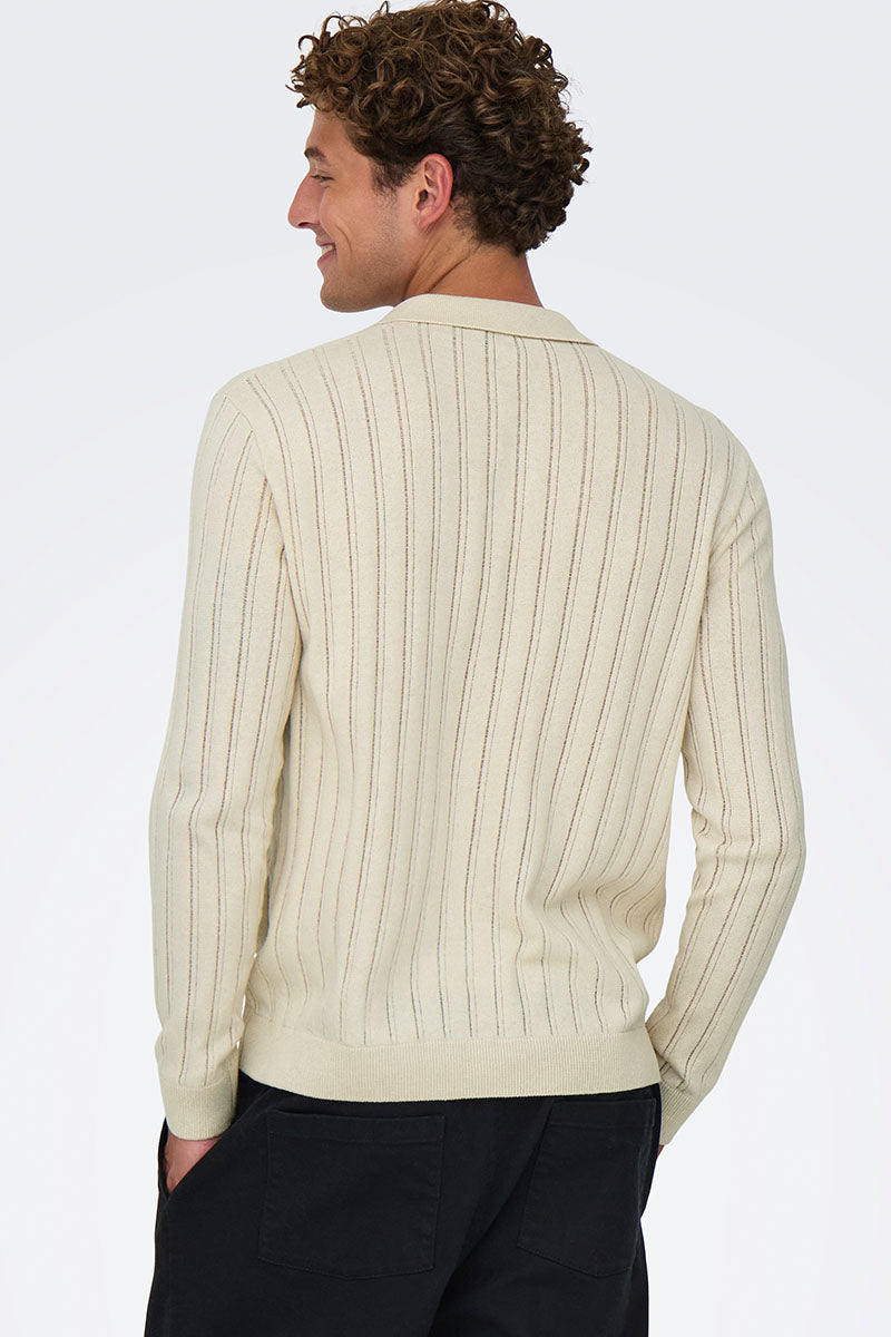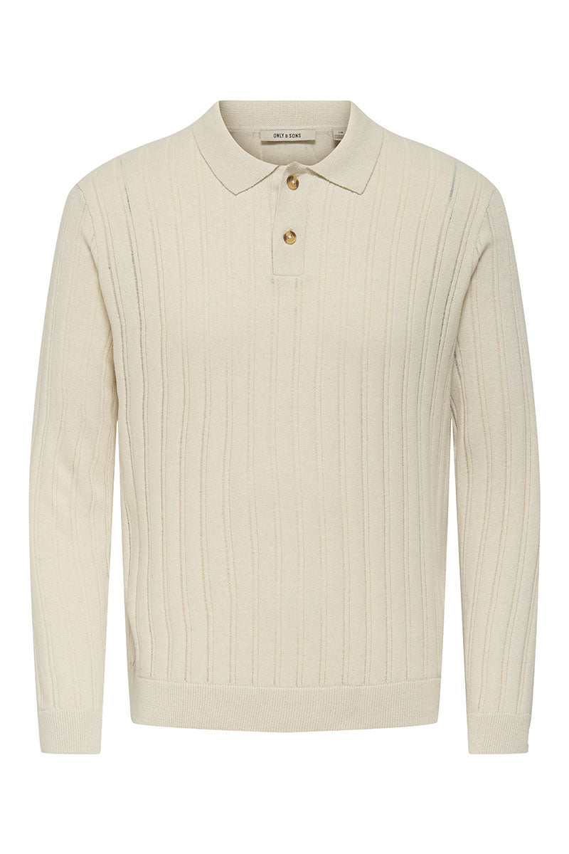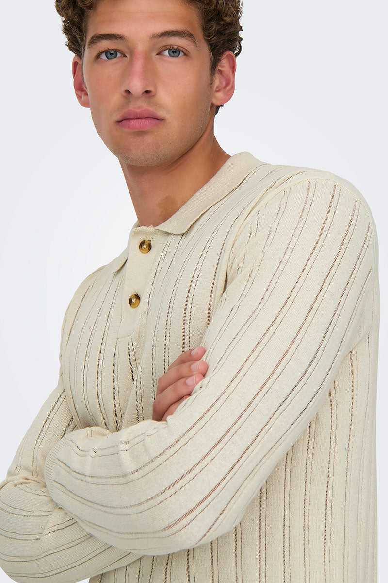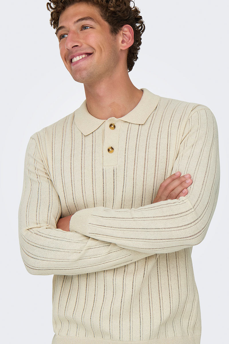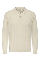 - Beżowy sweter polo z długim rękawem w kroju regular fit