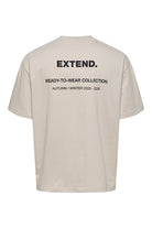• T-shirt ma nadruk z tyłu oraz małą naszywaną metkę z boku