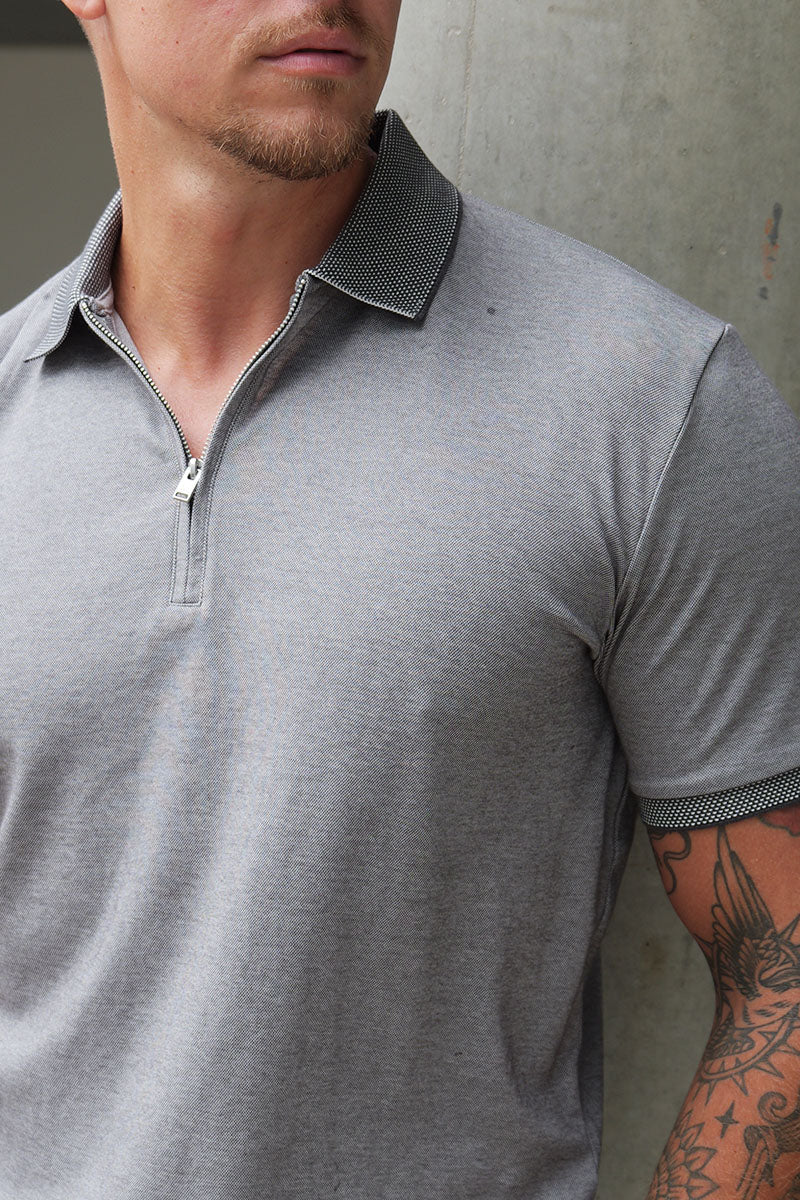 Fave Zip Polo SS Medium Grey Melange