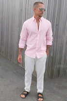Caiden Life LS Solid Linen Blend Shirt Veiled Pink