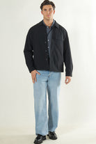 Shacket wykonany z tkaniny utworzonej poprzez splatanie dwóch lub więcej przędz, co nadaje mu ponadczasowy wygląd. Dzięki rozpięciu na guziki i klasycznemu kołnierzowi z klapą jest to uniwersalna propozycja na co dzień, pasująca zarówno do szkoły, jak i do pracy. Model w kolorze czarnym łączy wygodę i styl z ekologicznym podejściem, zawierając co najmniej 50% poliestru z recyklingu.
