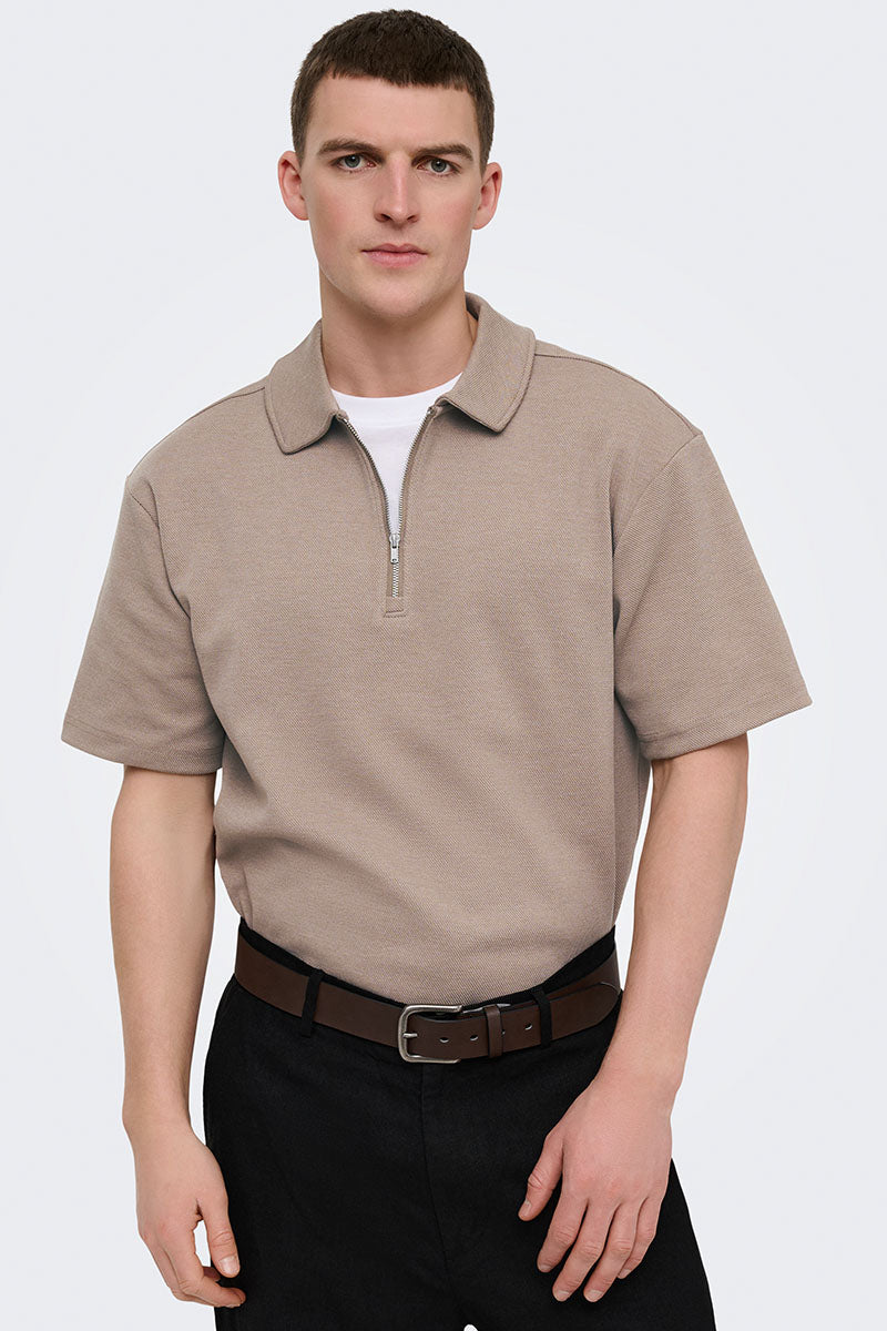 Ta polówka z krótkim rękawem i zamkiem na pół długości oferuje komfortowy, luźny krój, który idealnie sprawdzi się na co dzień, zarówno do szkoły, jak i do pracy. Wykonana z mieszanki poliestru, wiskozy oraz elastanu, zapewnia miękkość, lekkość i delikatny połysk, dzięki czemu prezentuje się elegancko i swobodnie. Długi fason oraz klasyczny kołnierzyk typu polo dopełniają stylu, tworząc ponadczasowy element garderoby.
