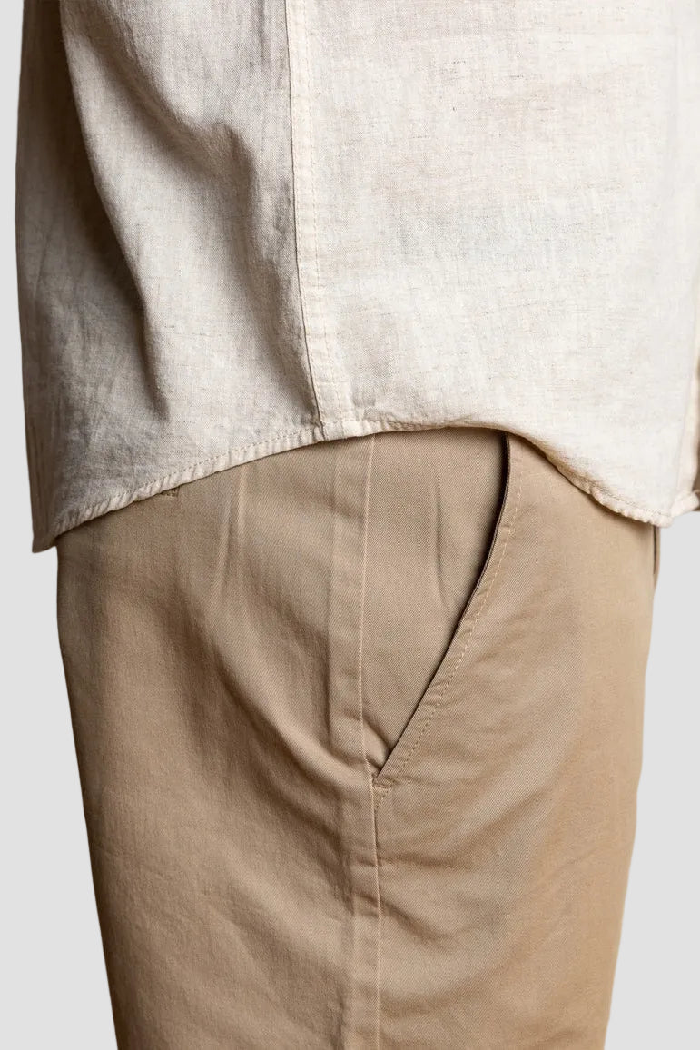 Mitchell to wygodne szorty uszyte z przewiewnej bawełny z domieszką elastanu, co zapewnia im elastyczność i komfort noszenia. Model w kolorze piaskowym idealnie wpisuje się w wiosenno-letni sezon 2026. Dzięki fasonowi i materiałowi szorty sprawdzą się zarówno na co dzień, jak i podczas letnich aktywności. Wykonane z tkaniny o splocie koszykowym, gwarantują trwałość i estetykę.