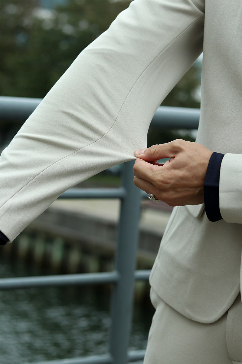 2. Dopasowanie: Wybierz garnitur, który pasuje do Twojej sylwetki, a rękaw niech kończy się na nadgarstku.